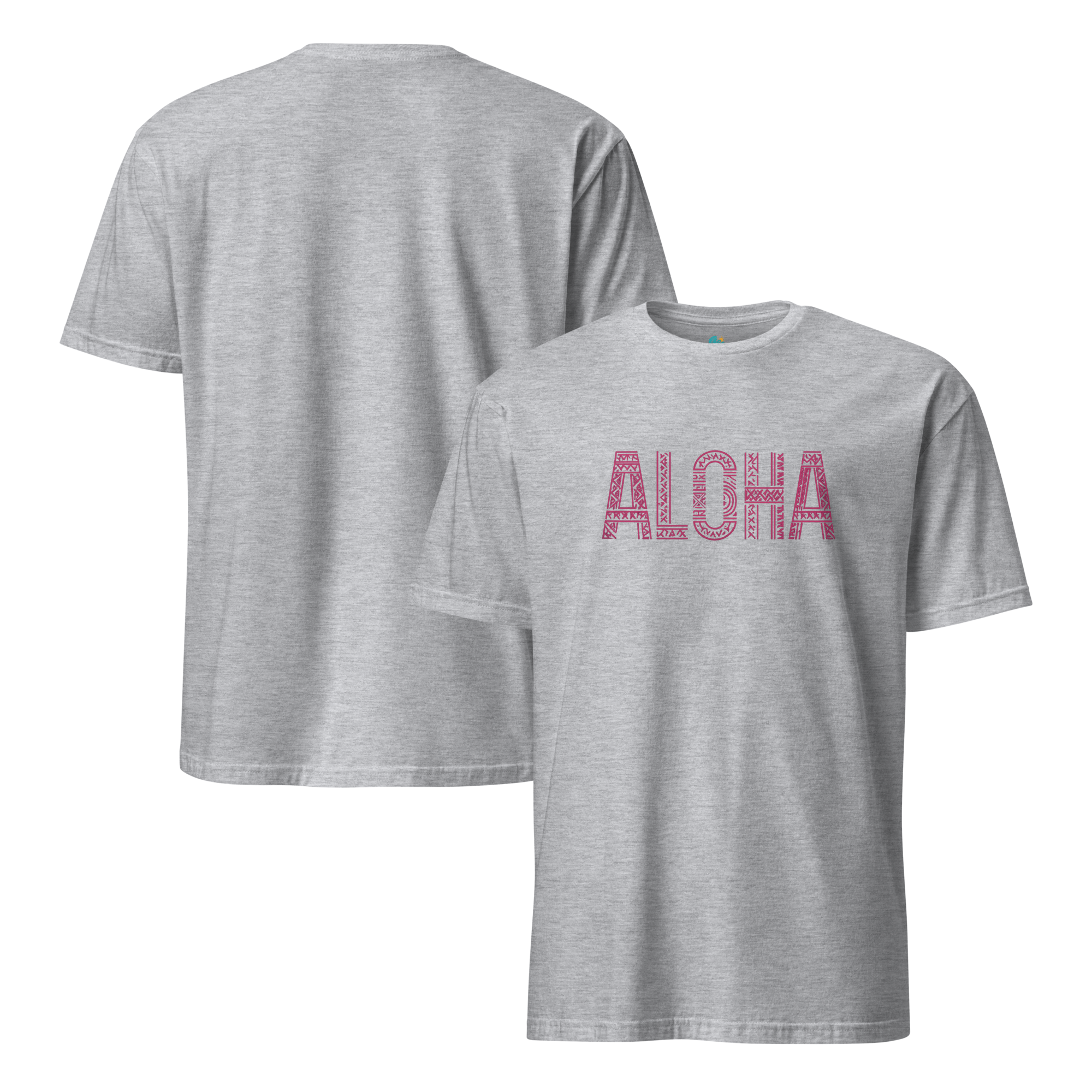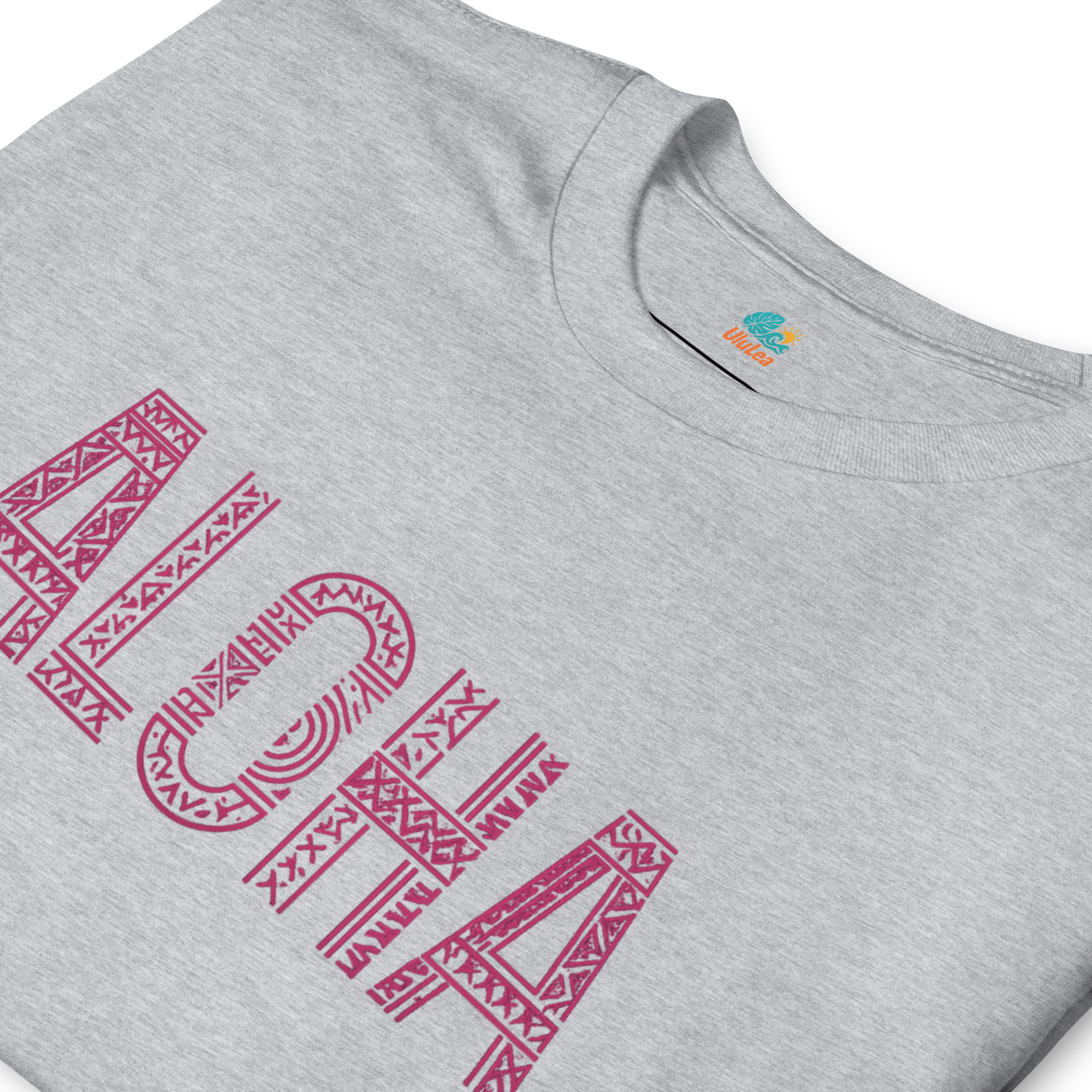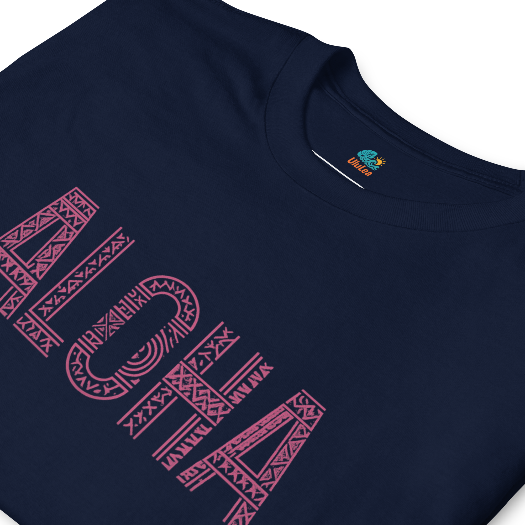 ALOHAの文字に、伝統ハワイアンモチーフをあしらった1枚。