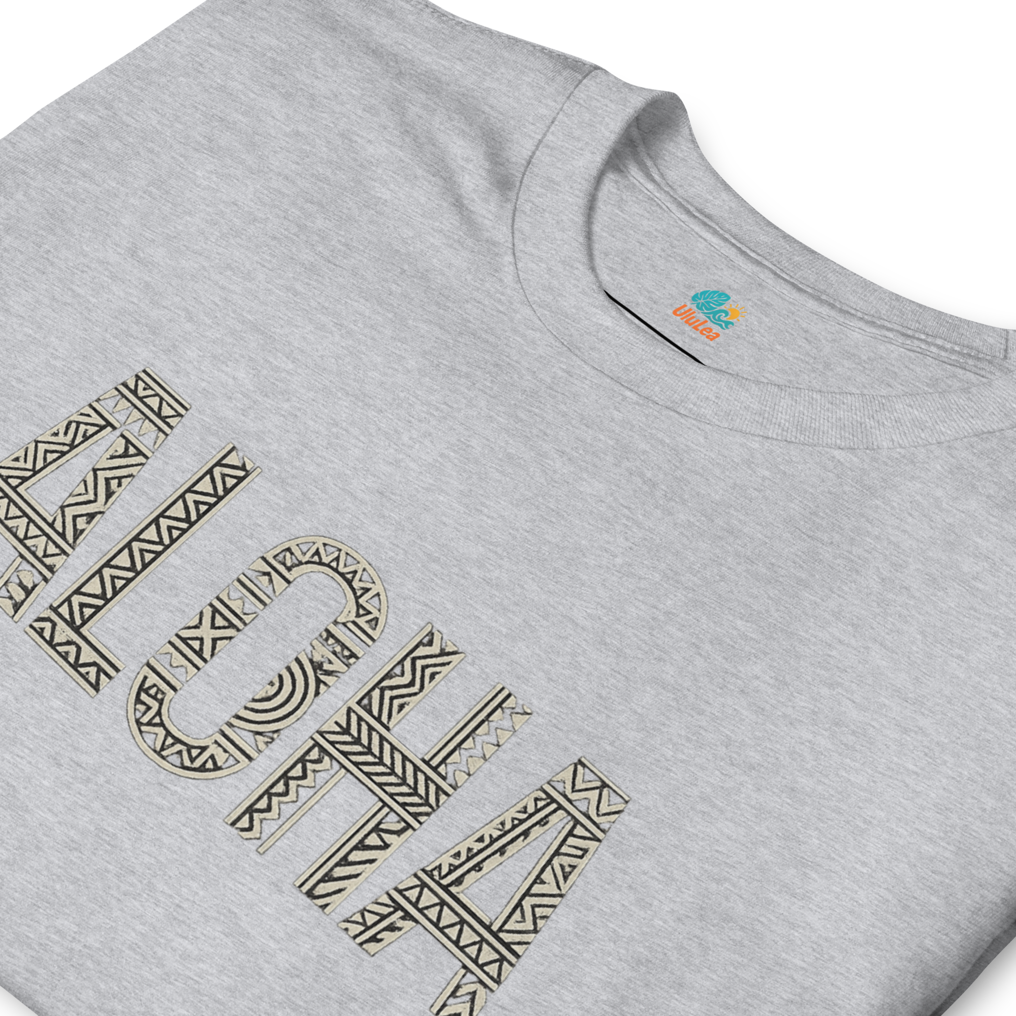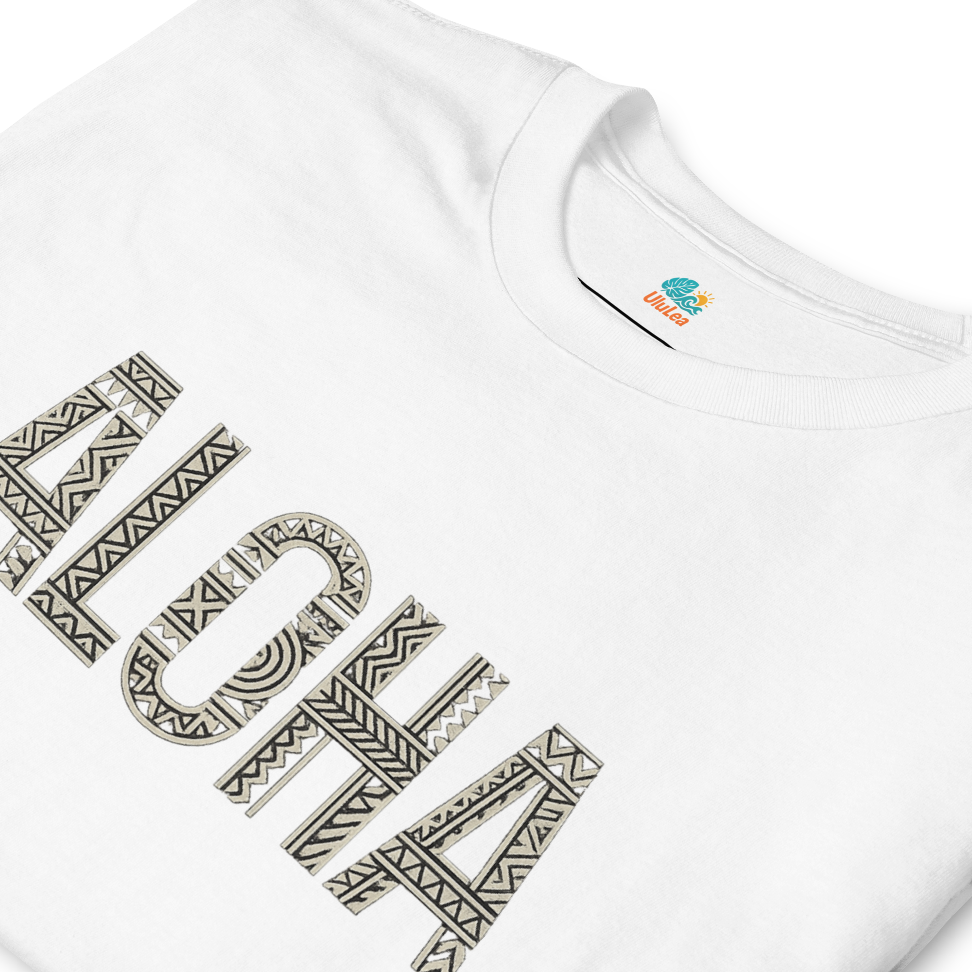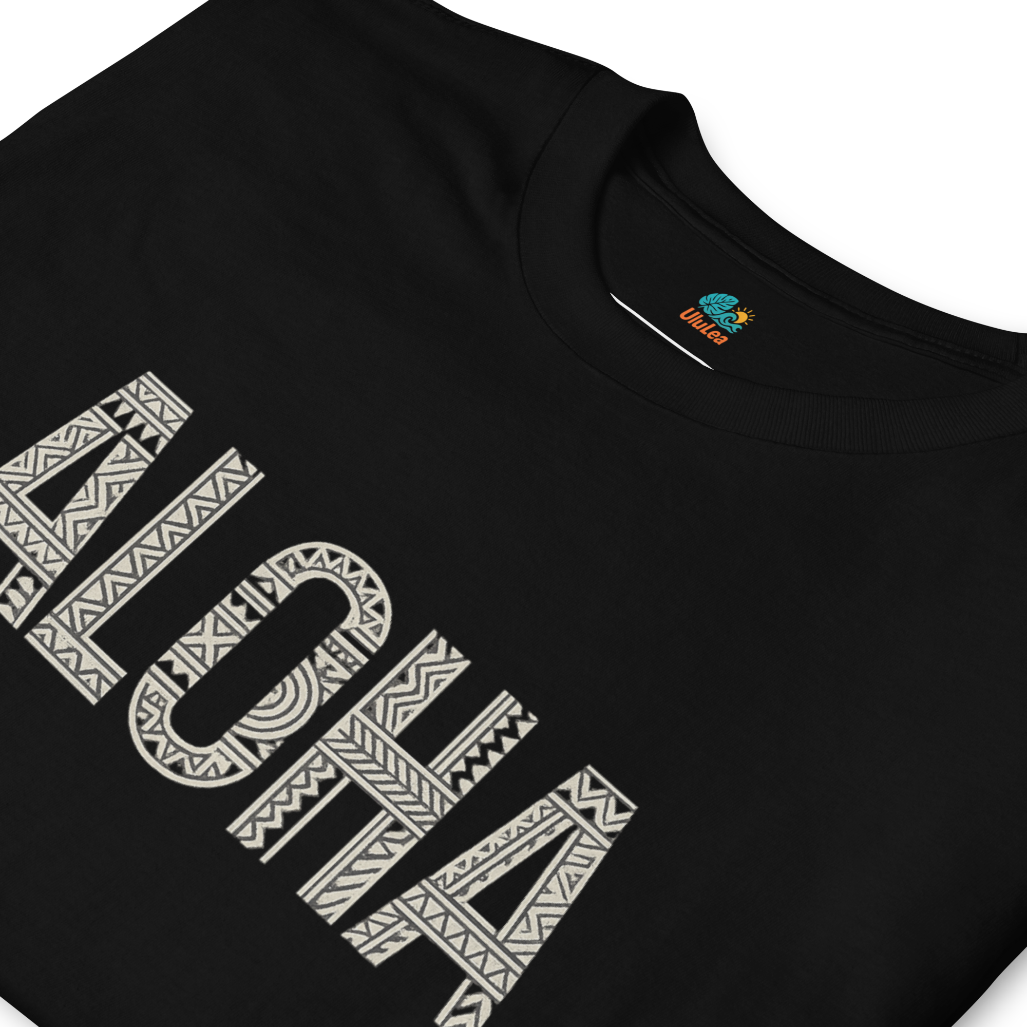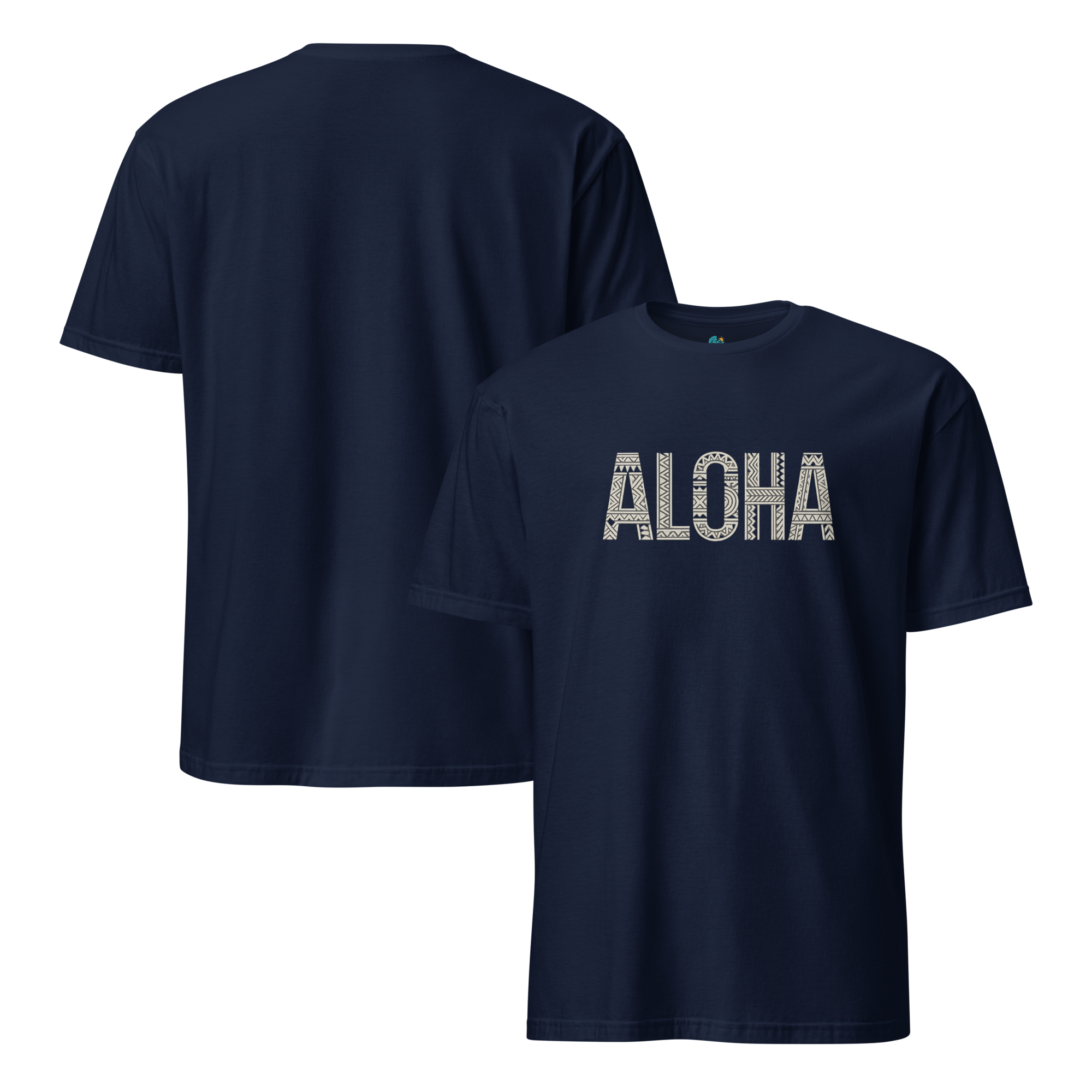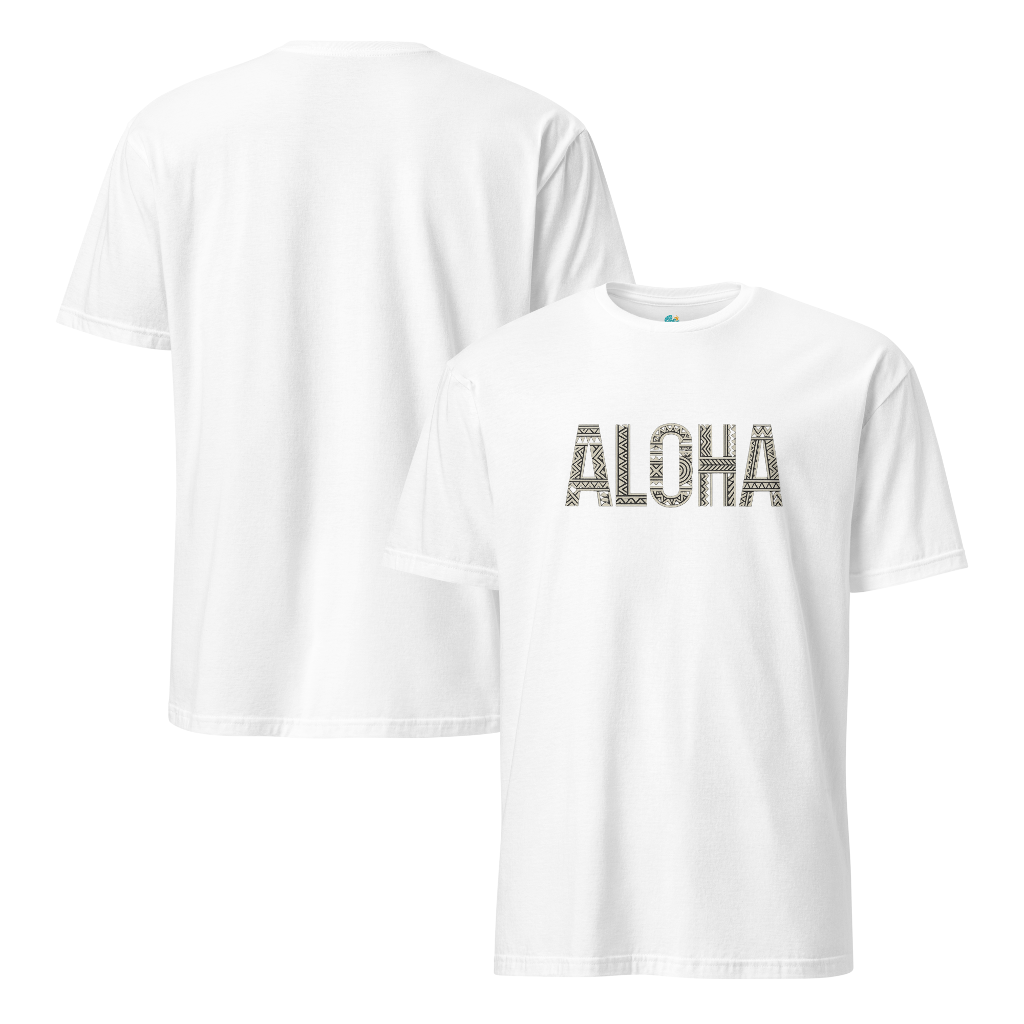 ALOHAの文字に、伝統ハワイアンモチーフをあしらった1枚。