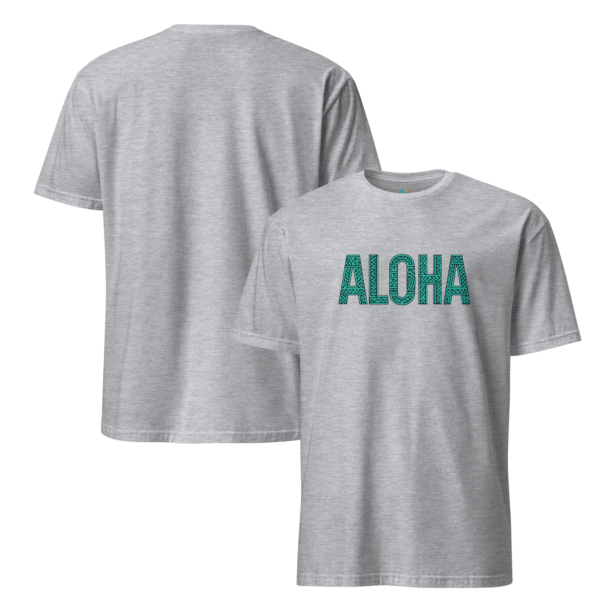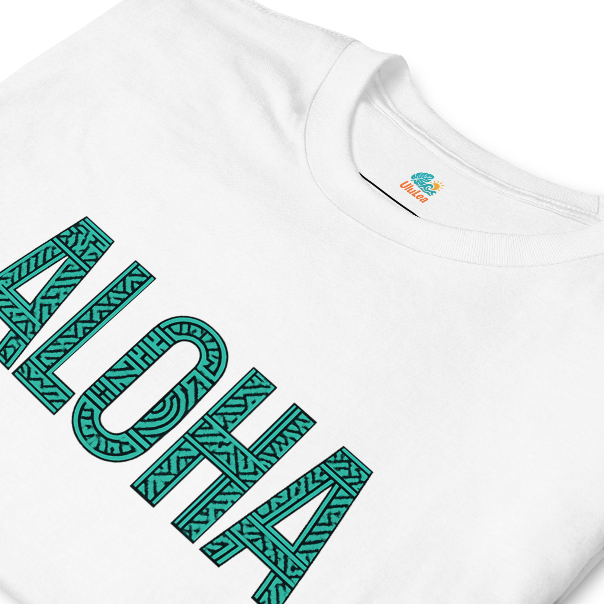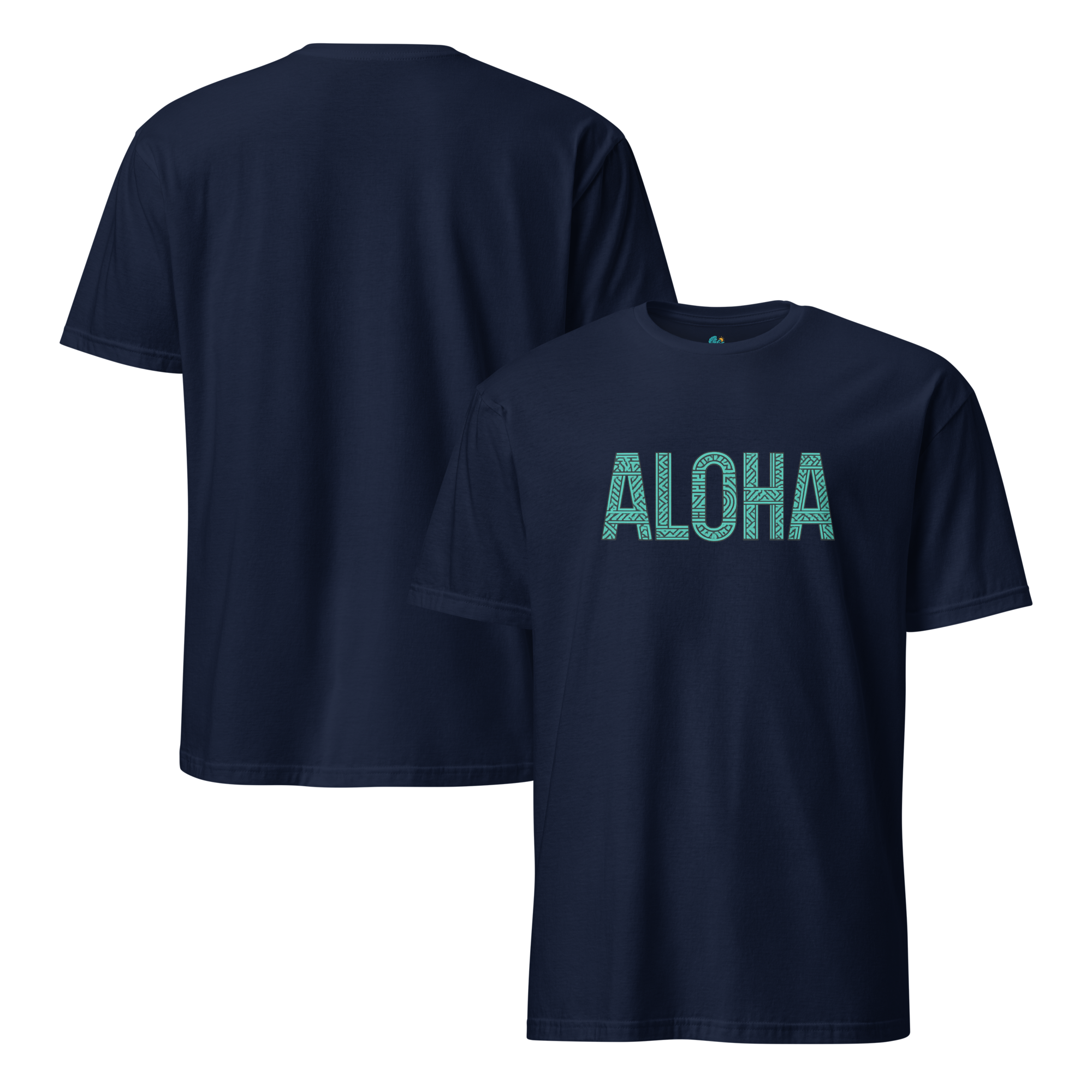 ALOHAの文字に、伝統ハワイアンモチーフをあしらった1枚。