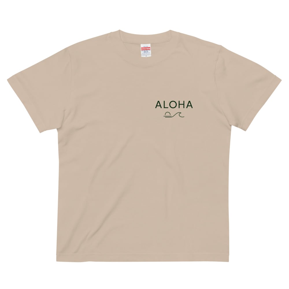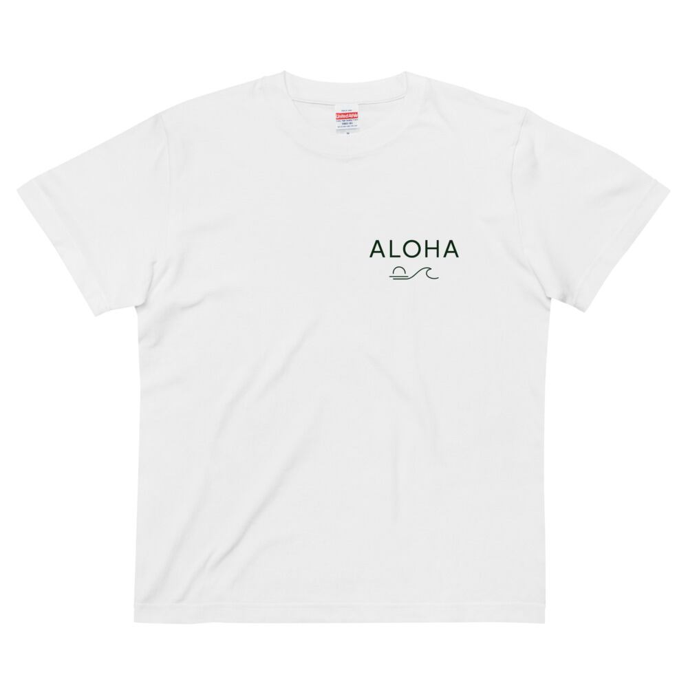 胸元に小さく「ALOHA」、背中にUluleaロゴをあしらった、控えめで品のあるハワイTシャツ。