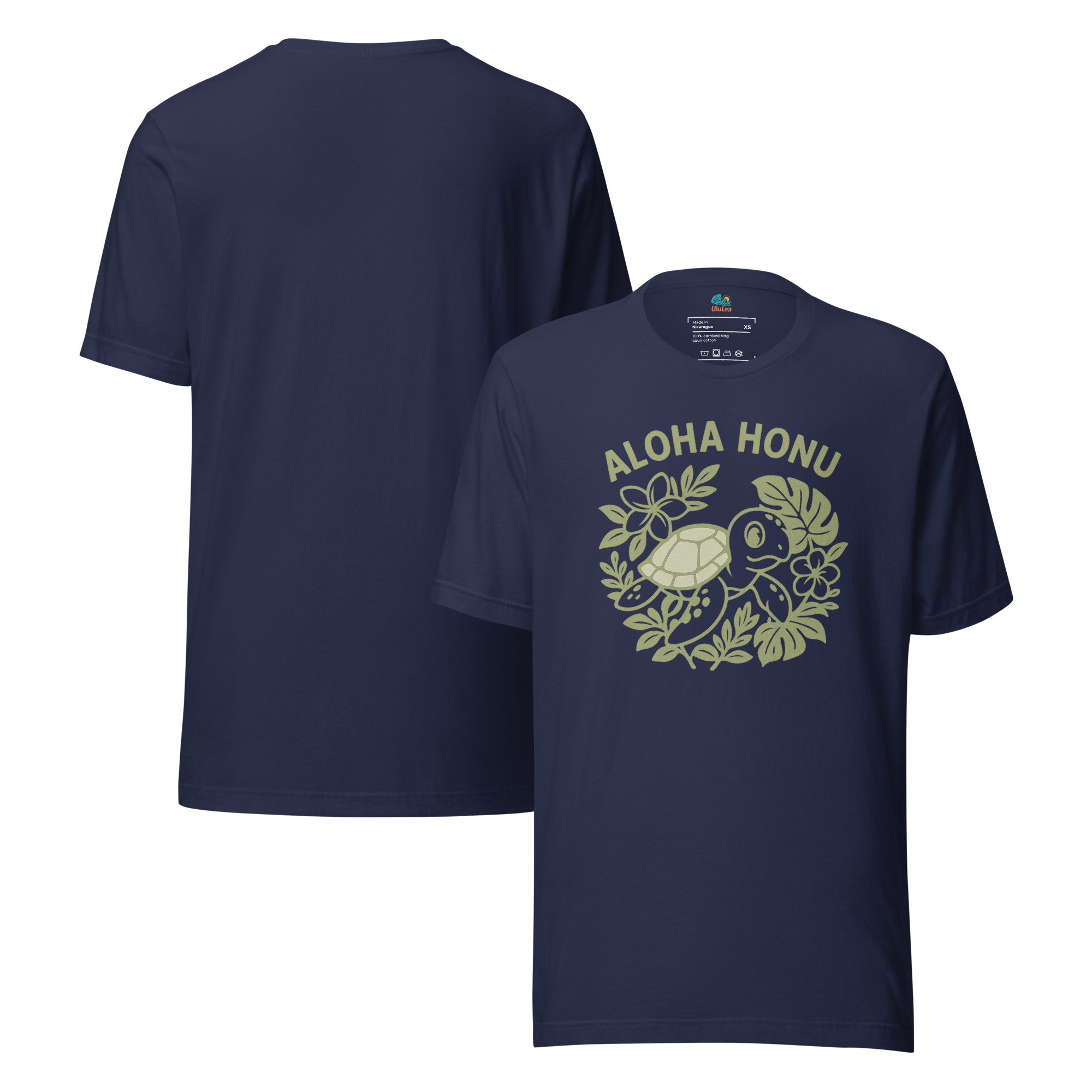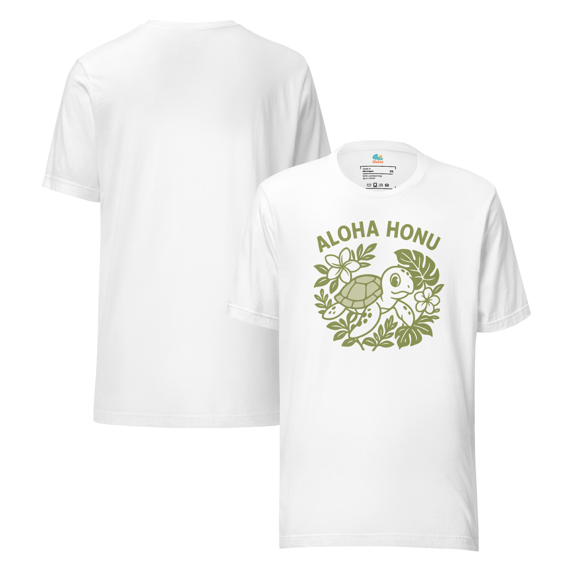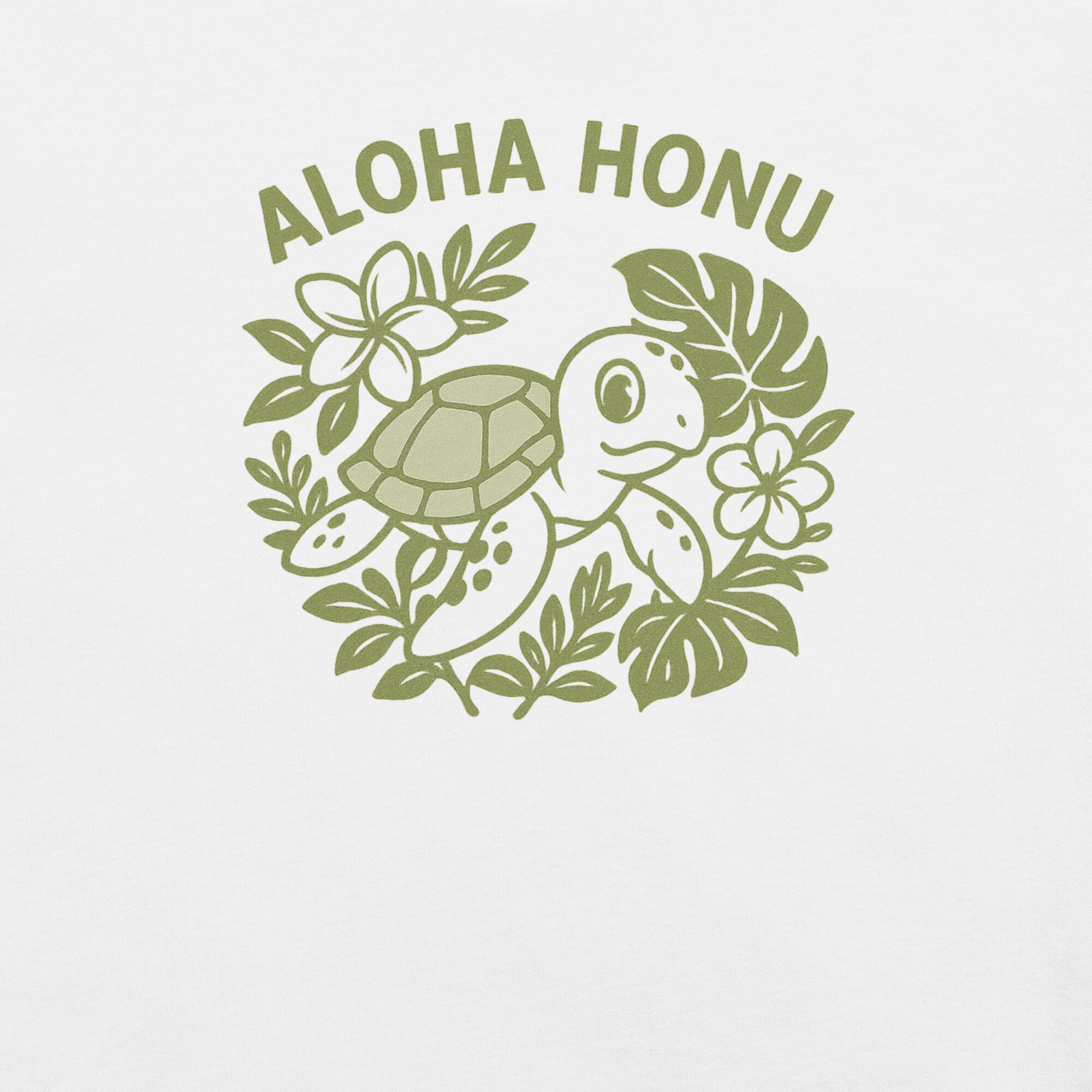 ALOHA HONU──癒しのホヌが、花々に囲まれてほほえむTシャツ。