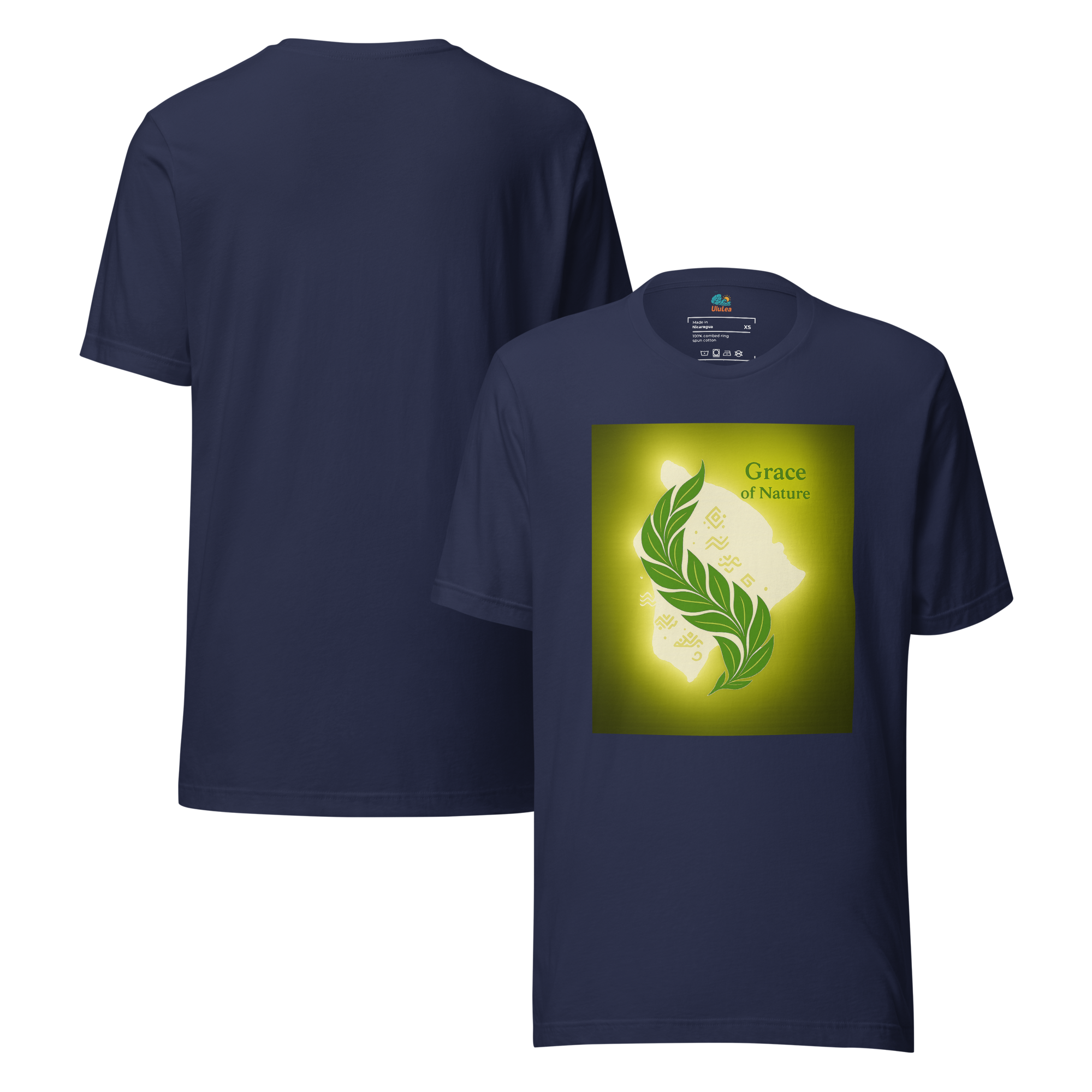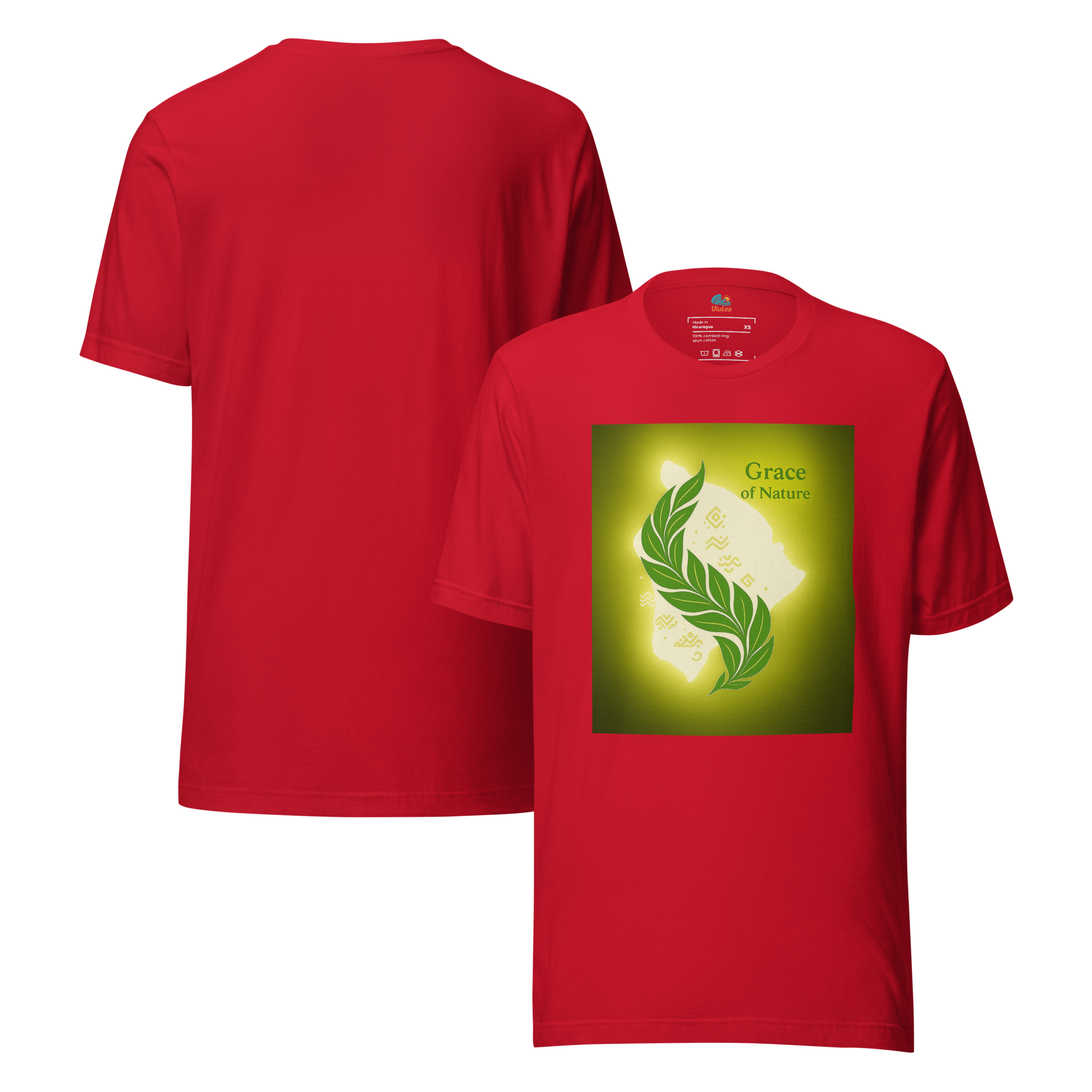 光に照らされたハワイの大地、その中心に描かれたのは、神聖な葉がしなやかに交差する姿。