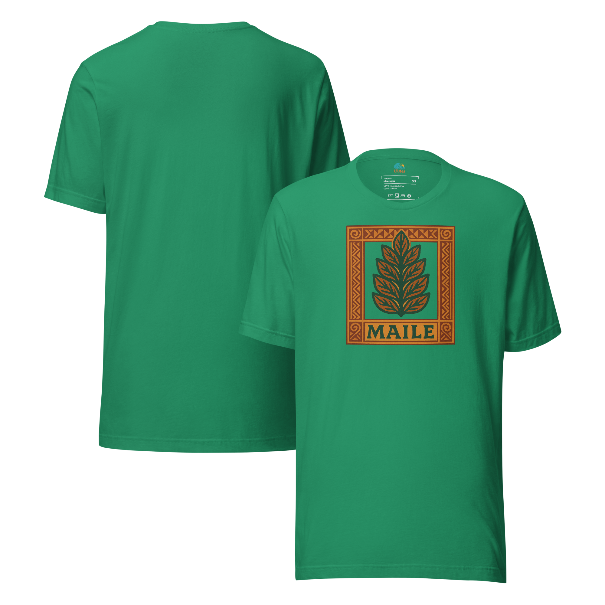 ハワイで神聖な植物とされるマイレの葉を、トライバルアートのようなシンボルとして描いたデザイン。