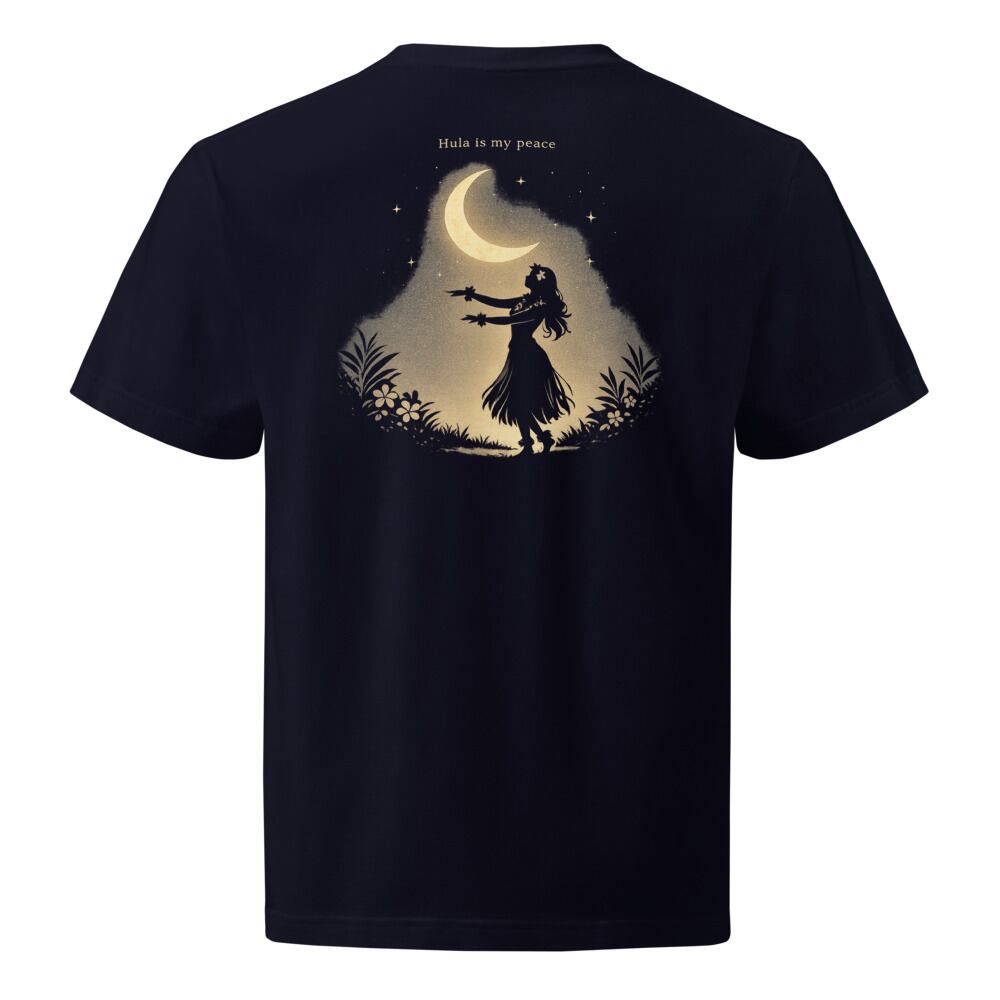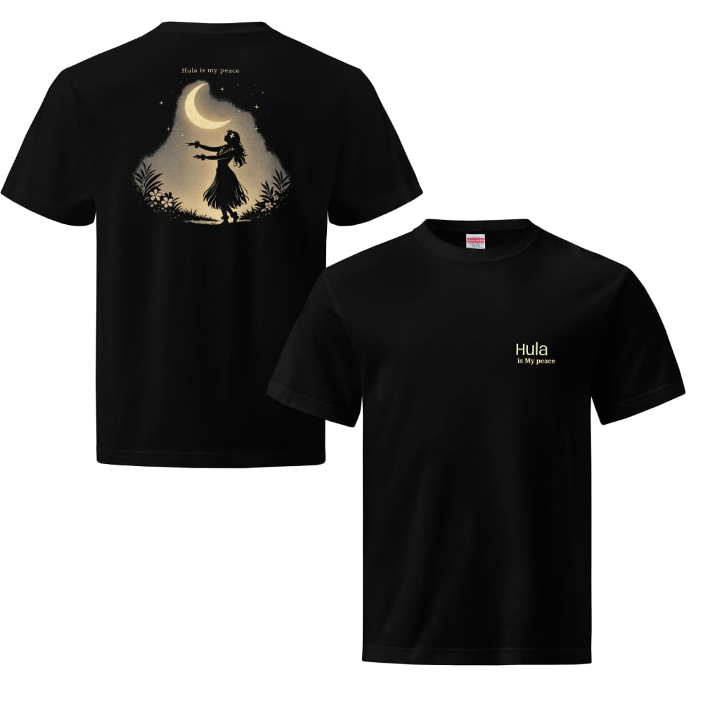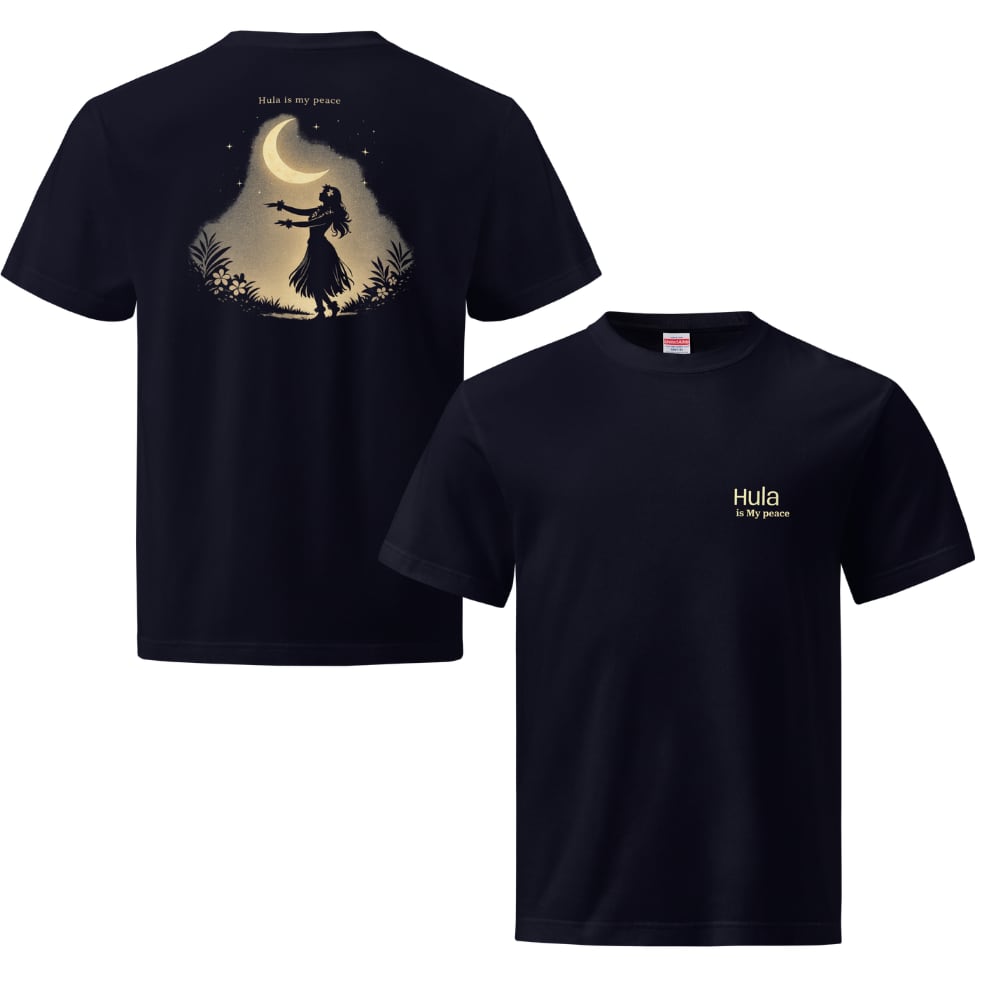 バックには、三日月に照らされながら踊るフラダンサーのシルエット。